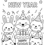 Desenho de Feliz Ano Novo 2026 Desenho Colorir Imprimir 053